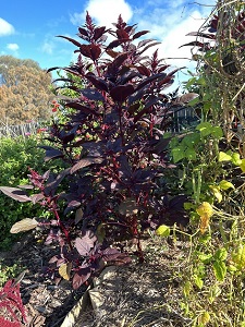 And there's another one - Amaranthus cruentus 'Hope Red Dye'. This is a lower-growing plant - and has edible leaves. Interestingly, its name derives from its use as a source of a deep red dye. It was used for this purpose by the Hopi (a tribe in the western United States of America). Again, this plant is in the vegetable garden. I'm hoping all my Amaranthus will self-seed (as does my "Love lies Bleeding") so that I can welcome their presence again, next year.