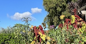 With their height and vivid hues, Amaranthus are a highlight of the garden in autumn. These annual plants, which are sown from seed, provide great interest in the flower and vegetable garden. Historically, Amaranthus have been prized by many societies for their nutritional qualities. For example, in pre-Hispanic times, the Aztecs cultivated the plant for its edible grain seeds while in eastern Asia, the plant is used as a leaf vegetable. In Australia, Amaranthus is lauded for its ornamental value and I have three different varieties in flower now, jostling for space amidst the remnants of pumpkin vines.